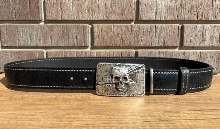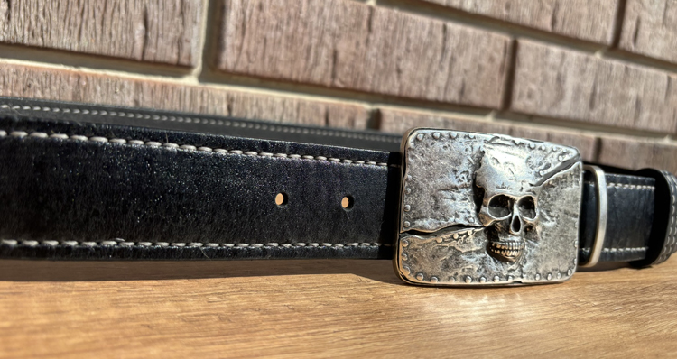 Каталог продукции » Ремни ручной работы » Ремень черный Череп старое серебро, 130 см