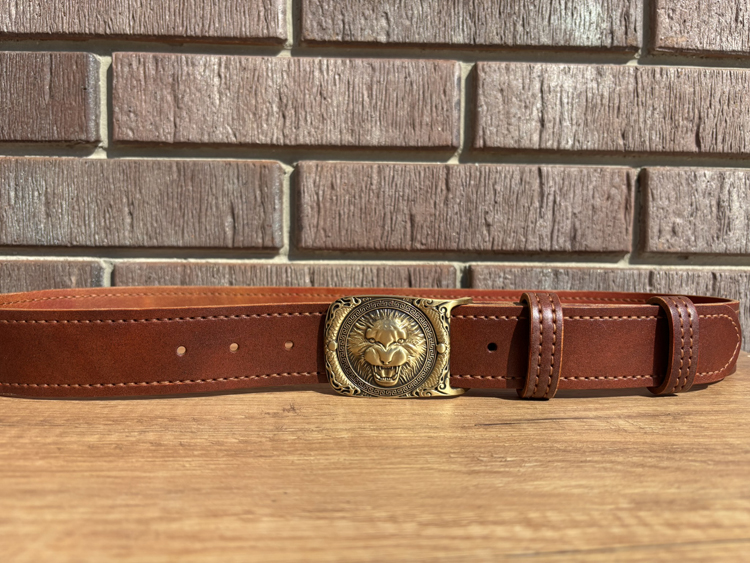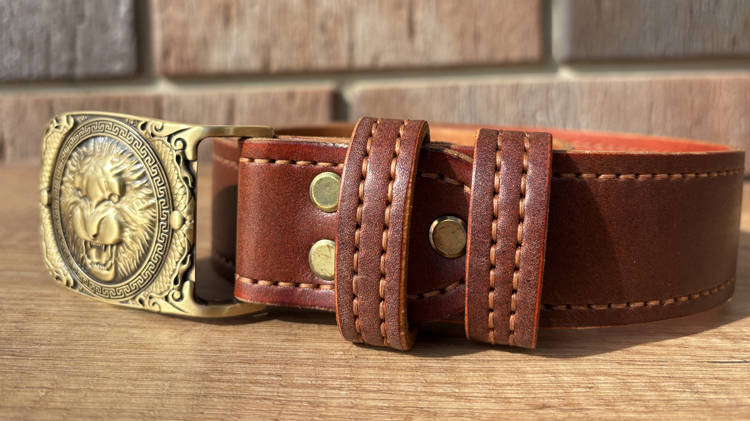 Ремень однослойный из толстой высококачественной шорно-седельной кожи толщиной 3,5+ мм, смешанного дубления барабанного крашения (сквозной прокрас) с двухсторонней отделкой.