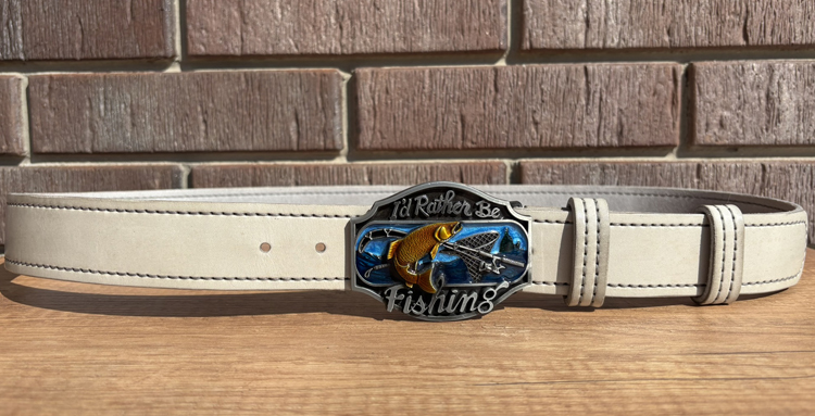 Края ременного полотна обработаны Tokonole и заполированы воском Columbus Прошиты вощеной плоской нитью Galaces 1 мм, что увеличивает срок службы и прочность ремня.