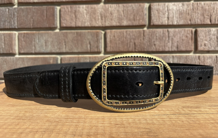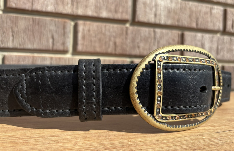 Ремень однослойный из толстой высококачественной шорно-седельной кожи толщиной 3,5+ мм, смешанного дубления барабанного крашения (сквозной прокрас) с двухсторонней отделкой.