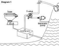 Позволяет переключать выброс из унитаза за борт или в септик-танк.