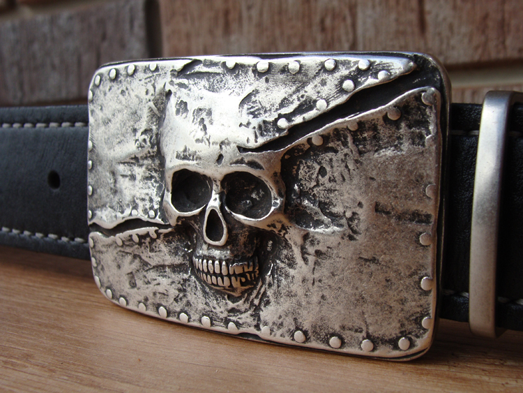 Мощная увесистая пряжка 87х57 мм, производство Италия, изготовлена из прочного металлического сплава с фактурным литьем. Рельефное, детальное изображение делает эту ременную пряжку еще более выразительной. Пряжка имеет уникальную отделку - состаренное серебро.