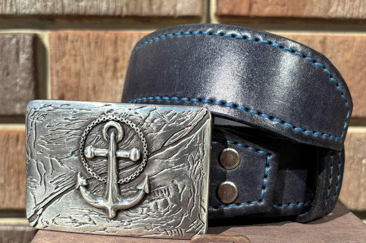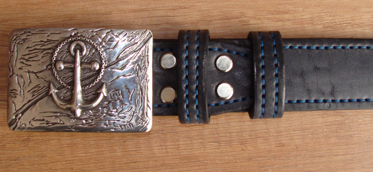 Края ременного полотна обработаны Tokonole и заполированы воском Columbus Прошиты вощеной плоской нитью Galaces 1 мм, что увеличивает срок службы и прочность ремня.