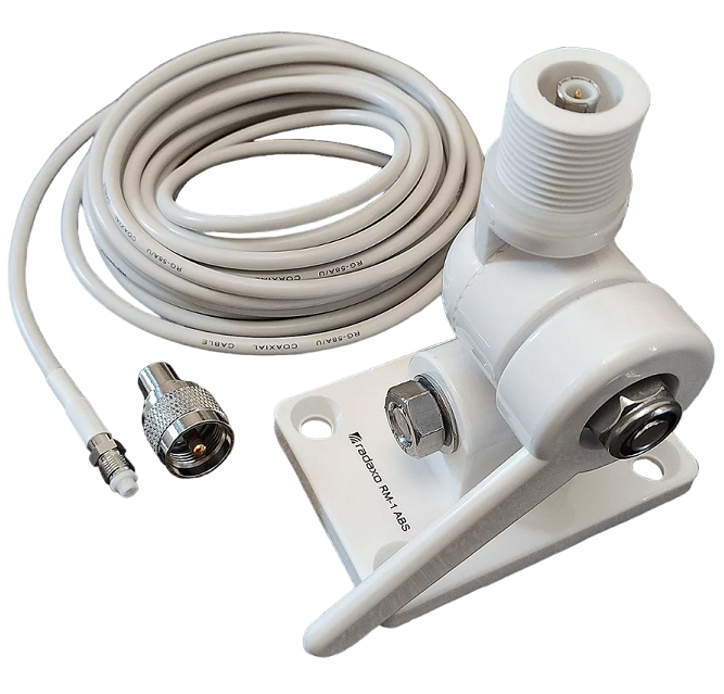 Шарнирное крепление RM-1 ABS используется для монтажа на плоскую поверхность судовых УКВ антенн радиосвязи с внутренней резьбой M24x2 в основании.