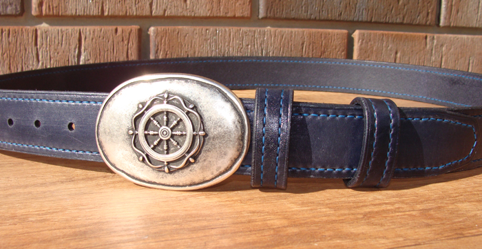 Края ременного полотна обработаны Tokonole и заполированы воском Columbus Прошиты вощеной плоской нитью Galaces 1 мм, что увеличивает срок службы и прочность ремня.