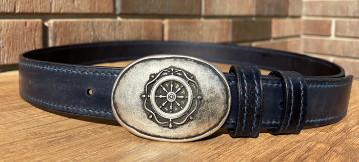 Ремень однослойный из толстой высококачественной шорно-седельной кожи толщиной 3,5+ мм, смешанного дубления барабанного крашения (сквозной прокрас) с двухсторонней отделкой.