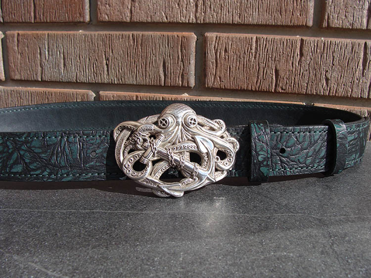 Пряжка дизайнерская, имиджевая, выполнена из прочного, полновесного сплава , высокого качества, литье с тщательной детализацией "Осьминог с якорем". Габариты: 97х69 мм, вес: 128,7 гр. Производство Италия.
