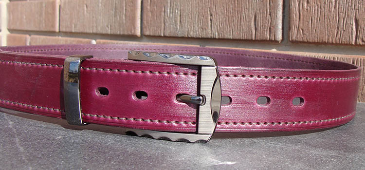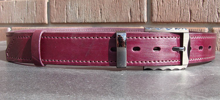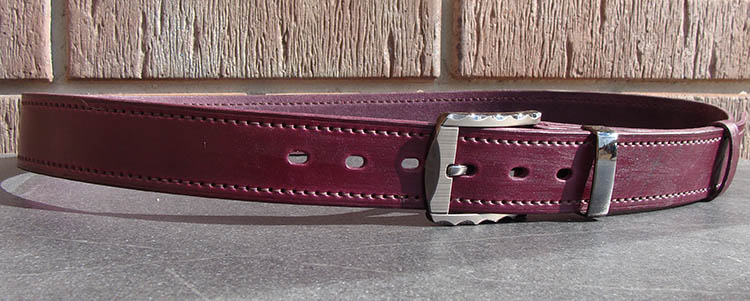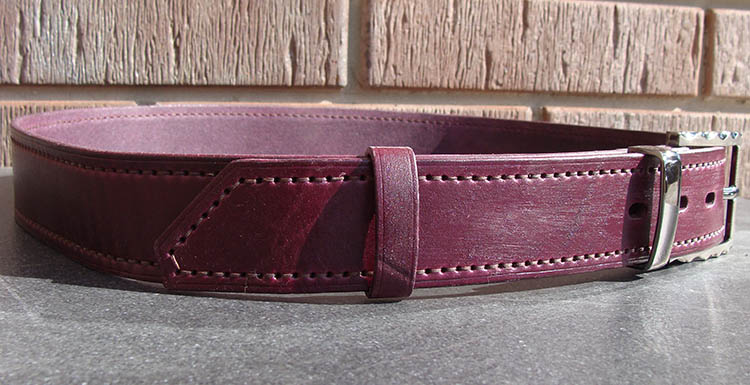 Края ременного полотна обработаны Tokonole и заполированы воском Columbus Прошиты вощеной плоской нитью Galaces 1 мм, что увеличивает срок службы и прочность ремня.