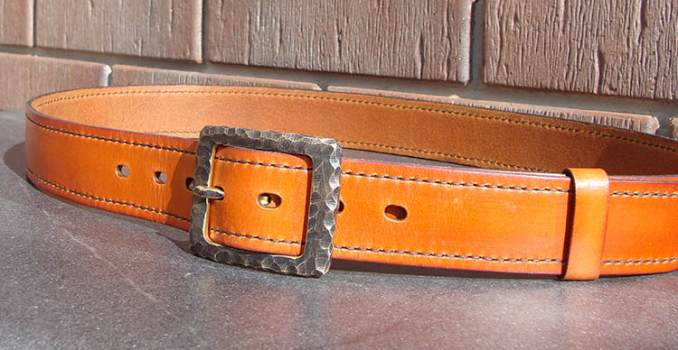 Края ременного полотна обработаны Tokonole и заполированы воском Columbus Прошиты вощеной плоской нитью Galaces 1 мм, что увеличивает срок службы и прочность ремня.