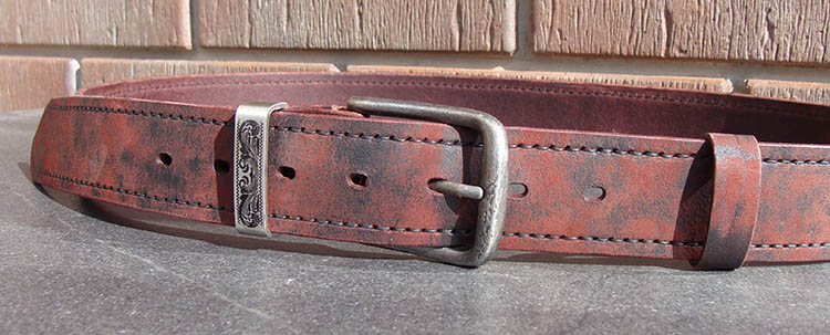 Ремень однослойный из толстой высококачественной шорно-седельной кожи толщиной 3,5+ мм, смешанного дубления барабанного крашения (сквозной прокрас) с двухсторонней отделкой.
