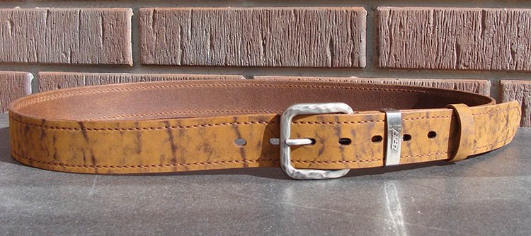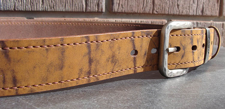 Края ременного полотна обработаны Tokonole и заполированы воском Columbus Прошиты вощеной плоской нитью Galaces 1 мм, что увеличивает срок службы и прочность ремня.